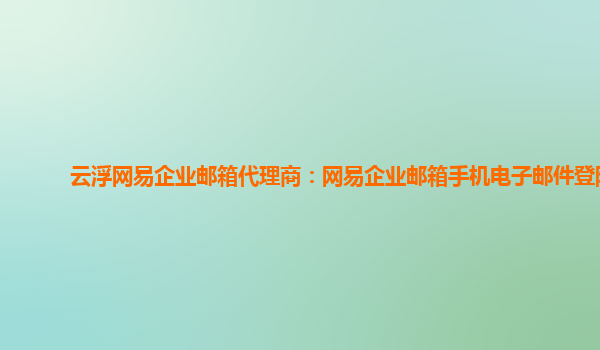 云浮网易企业邮箱代理商:网易企业邮箱手机电子邮件登陆