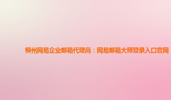 柳州网易企业邮箱代理商:网易邮箱大师登录入口官网