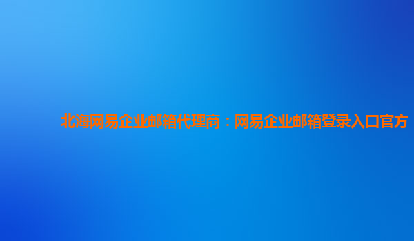 北海网易企业邮箱代理商:网易企业邮箱登录入口官方