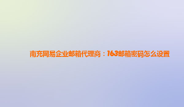 南充网易企业邮箱代理商:163邮箱密码怎么设置