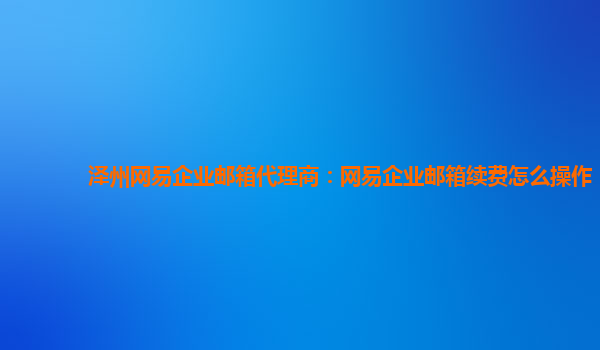网易企业邮箱代理商:网易企业邮箱续费怎么操作
