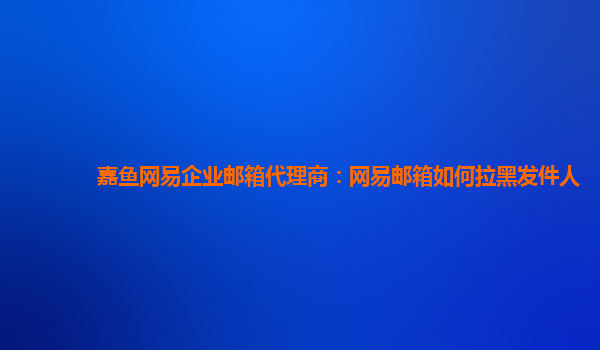 嘉鱼网易企业邮箱代理商:网易邮箱如何拉黑发件人