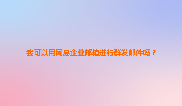 我可以用网易企业邮箱进行群发邮件吗?