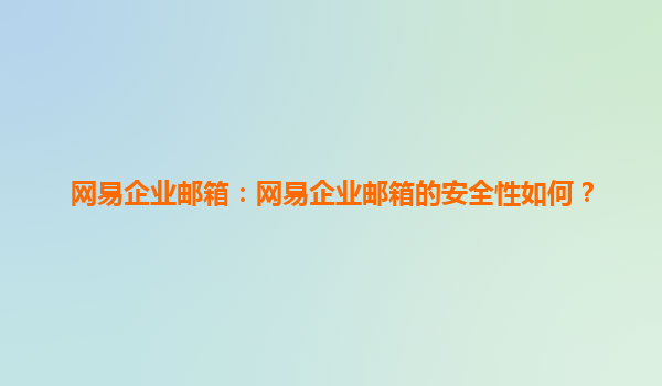 - 系统漏洞修补:网易企业邮箱定期进行系统漏洞扫描和修复,确保邮件系统不会因漏洞而被黑客入侵。