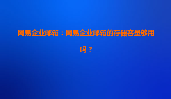 网易企业邮箱的存储容量够用吗?
