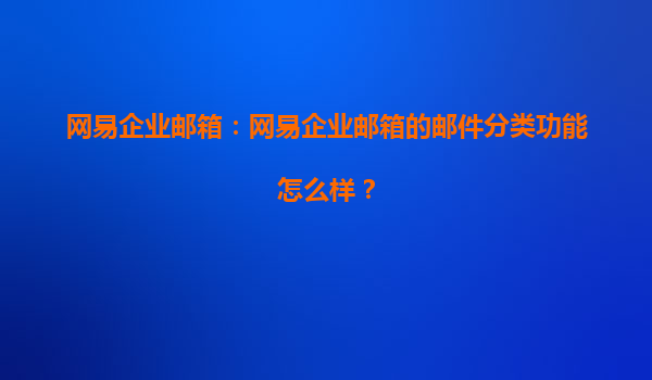 网易企业邮箱邮件分类功能:提升办公效率的利器