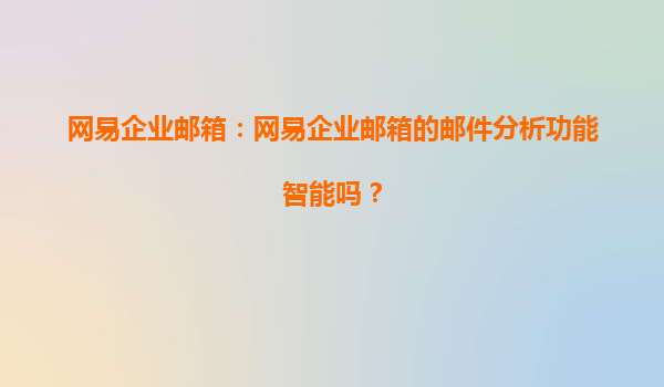 网易企业邮箱的邮件分析功能具备一定的智能化特点,具体表现在以下几个方面: