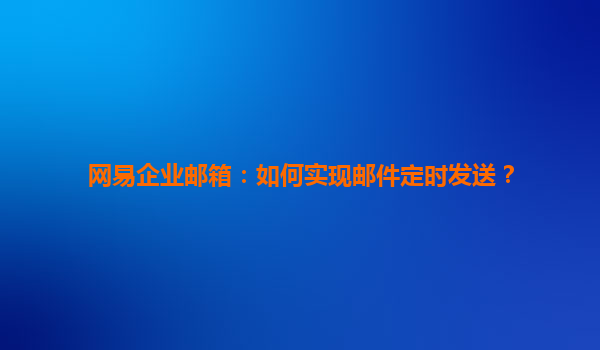 网易企业邮箱用户可以通过以下步骤设置定时发送邮件: