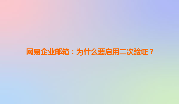 总的来说,启用二次验证是提升企业邮箱安全性的有效措施。网易企业邮箱以其稳定、安全、高效的特点,成为国内企业的优选邮件服务提供商。通过启用二次验证,企业不仅能保护自身的敏感信息安全,还能提升整体的业务运行效率。在信息安全日益重要的今天,选择一个可靠的企业邮箱服务,启用二次验证,是每个企业负责任的选择。