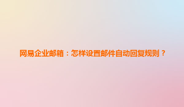 如何在网易企业邮箱中设置邮件自动回复规则