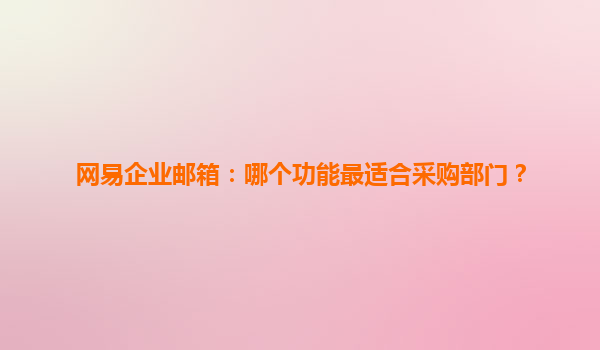 结合采购部门的需求,以下是网易企业邮箱中几个最适合采购部门的功能: