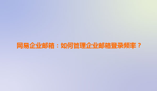 网易企业邮箱:如何管理企业邮箱登录频率?