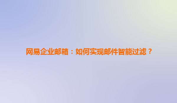 如何实现网易企业邮箱的邮件智能过滤