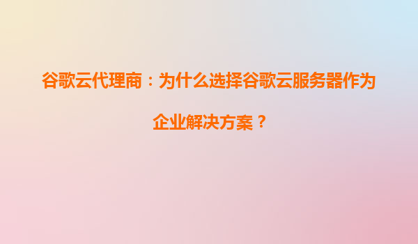 谷歌云代理商:为什么选择谷歌云服务器作为企业解决方案?