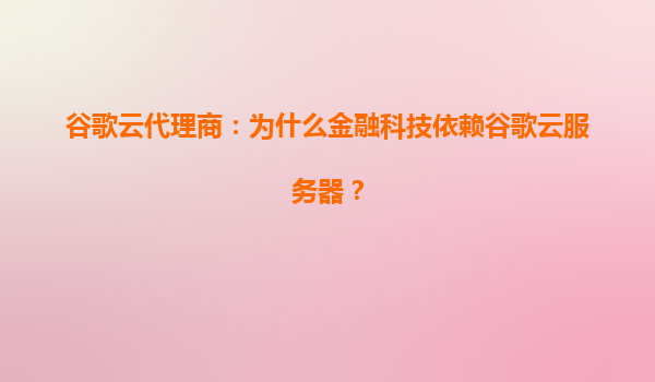 谷歌云代理商:为什么金融科技依赖谷歌云服务器?