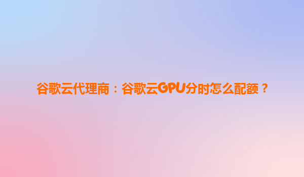 谷歌云代理商解读:谷歌云GPU分时配额机制与使用优势
