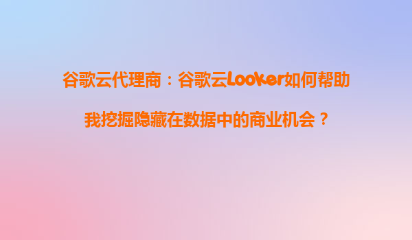 谷歌云代理商:谷歌云Looker如何帮助我挖掘隐藏在数据中的商业机会