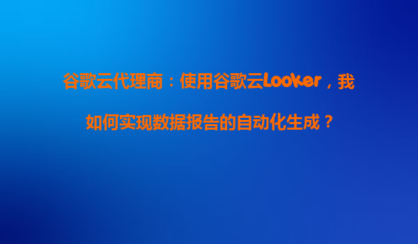 谷歌云代理商:如何通过Looker实现数据报告的自动化生成