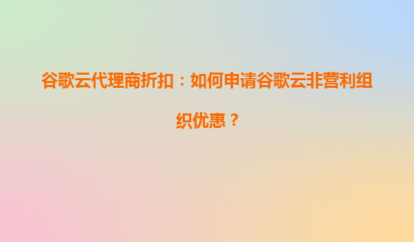 谷歌云代理商折扣:如何申请谷歌云非营利组织优惠