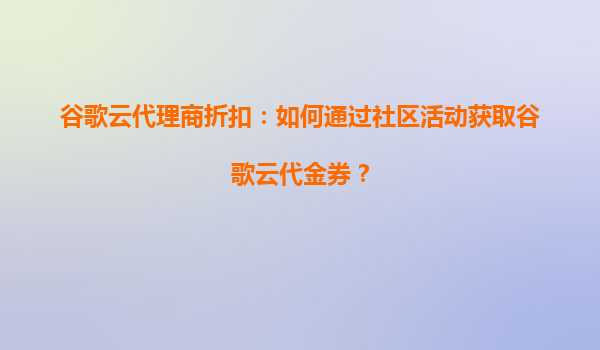 谷歌云代理商折扣:如何通过社区活动获取谷歌云代金券?