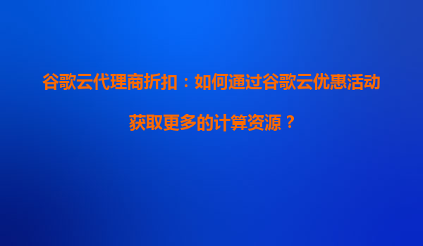 谷歌云代理商折扣:如何通过谷歌云优惠活动获取更多的计算资源?