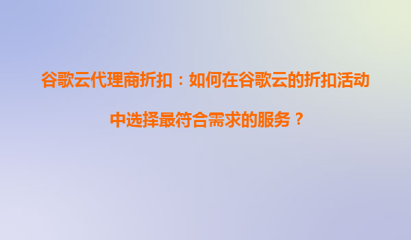 谷歌云代理商折扣:如何在谷歌云的折扣活动中选择最符合需求的服务?