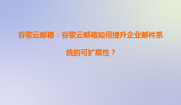 谷歌云邮箱:如何提升企业邮件系统的可扩展性?
