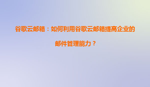 谷歌云邮箱:如何利用谷歌云邮箱提高企业的邮件管理能力?