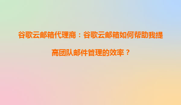 谷歌云邮箱如何助力企业高效管理团队邮件