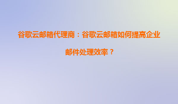 谷歌云邮箱代理商:谷歌云邮箱如何提高企业邮件处理效率?