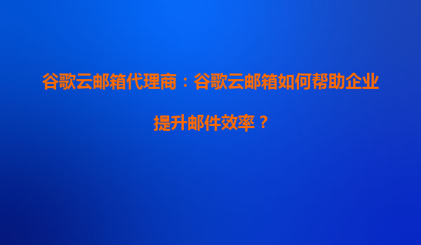 谷歌云邮箱代理商:谷歌云邮箱如何帮助企业提升邮件效率?