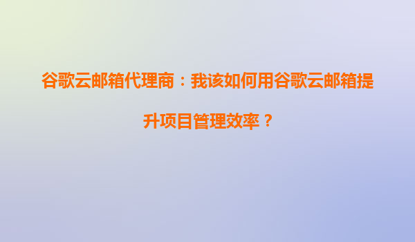 谷歌云邮箱代理商:我该如何用谷歌云邮箱提升项目管理效率?