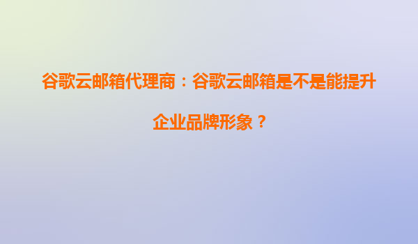 谷歌云邮箱代理商解析:谷歌云邮箱如何提升企业品牌形象?