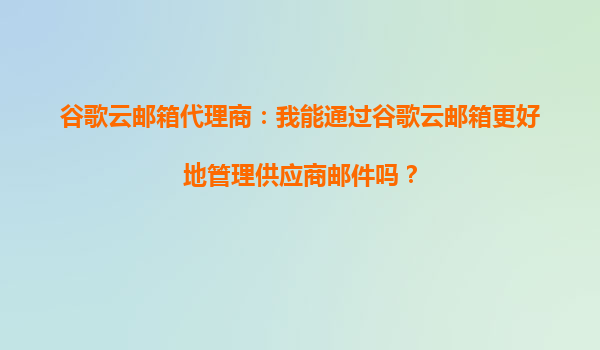 谷歌云邮箱代理商:通过谷歌云邮箱更好地管理供应商邮件