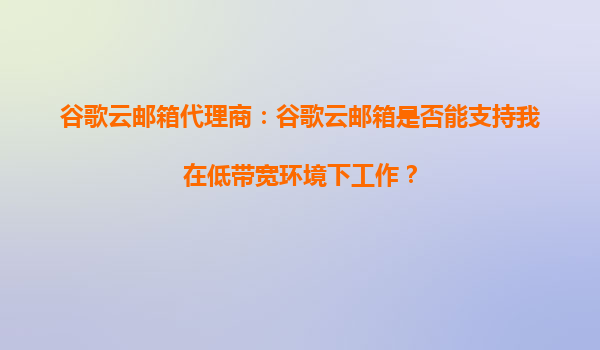 谷歌云邮箱代理商:谷歌云邮箱是否能支持我在低带宽环境下工作?
