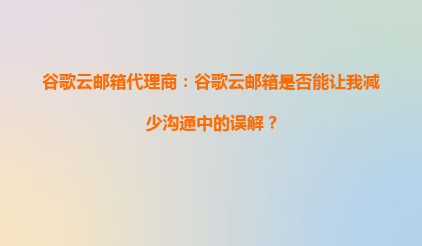 谷歌云邮箱代理商:谷歌云邮箱是否能让我减少沟通中的误解?