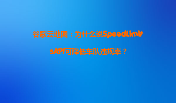 谷歌云地图:为什么说SpeedLimitsAPI可降低车队违规率?