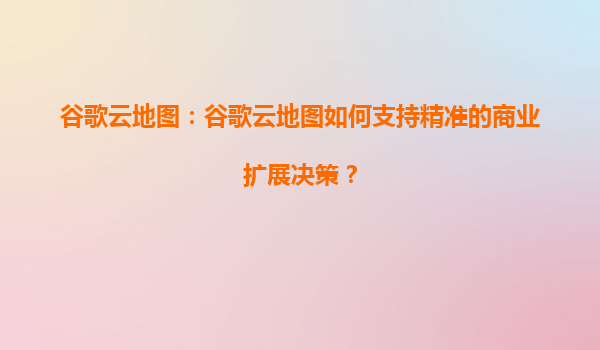 谷歌云地图:如何支持精准的商业扩展决策