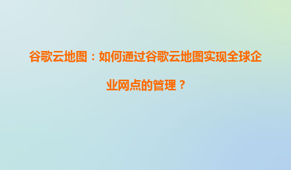 谷歌云地图:如何通过谷歌云地图实现全球企业网点的管理?