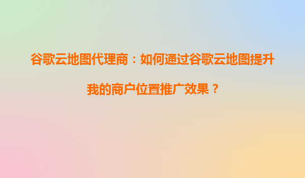 谷歌云地图代理商:如何通过谷歌云地图提升你的商户位置推广效果?