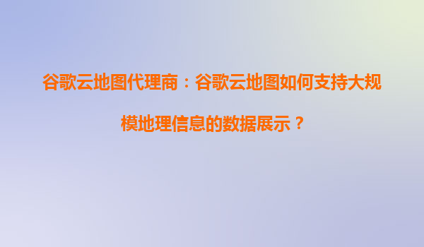 谷歌云地图代理商:谷歌云地图如何支持大规模地理信息的数据展示?