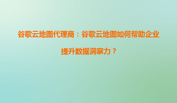 谷歌云地图代理商:谷歌云地图如何帮助企业提升数据洞察力?