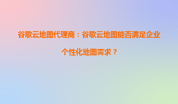 谷歌云地图代理商:谷歌云地图能否满足企业个性化地图需求?