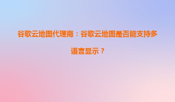 谷歌云地图代理商:谷歌云地图是否能支持多语言显示?