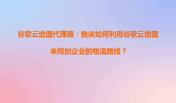 谷歌云地图代理商:如何利用谷歌云地图优化企业物流路线规划