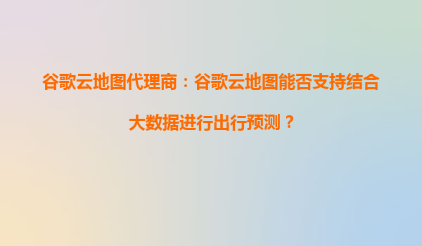 谷歌云地图代理商:谷歌云地图能否支持结合大数据进行出行预测?