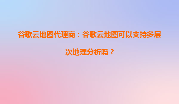 谷歌云地图代理商:谷歌云地图可以支持多层次地理分析吗?