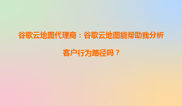 谷歌云地图代理商:谷歌云地图能帮助我分析客户行为路径吗?