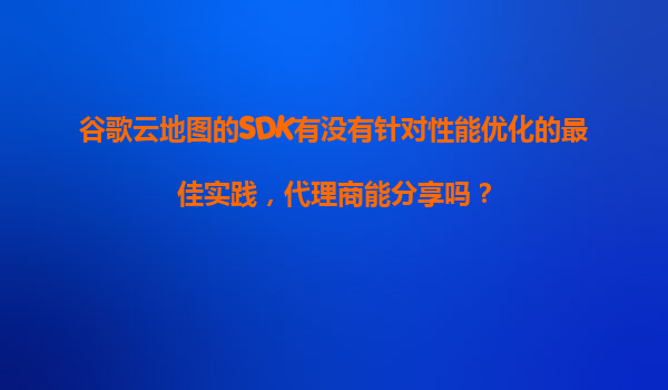 谷歌云地图SDK性能优化最佳实践及代理商优势解析