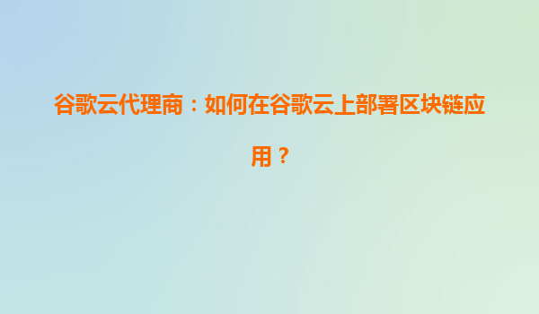 谷歌云代理商指南:如何在谷歌云上部署区块链应用